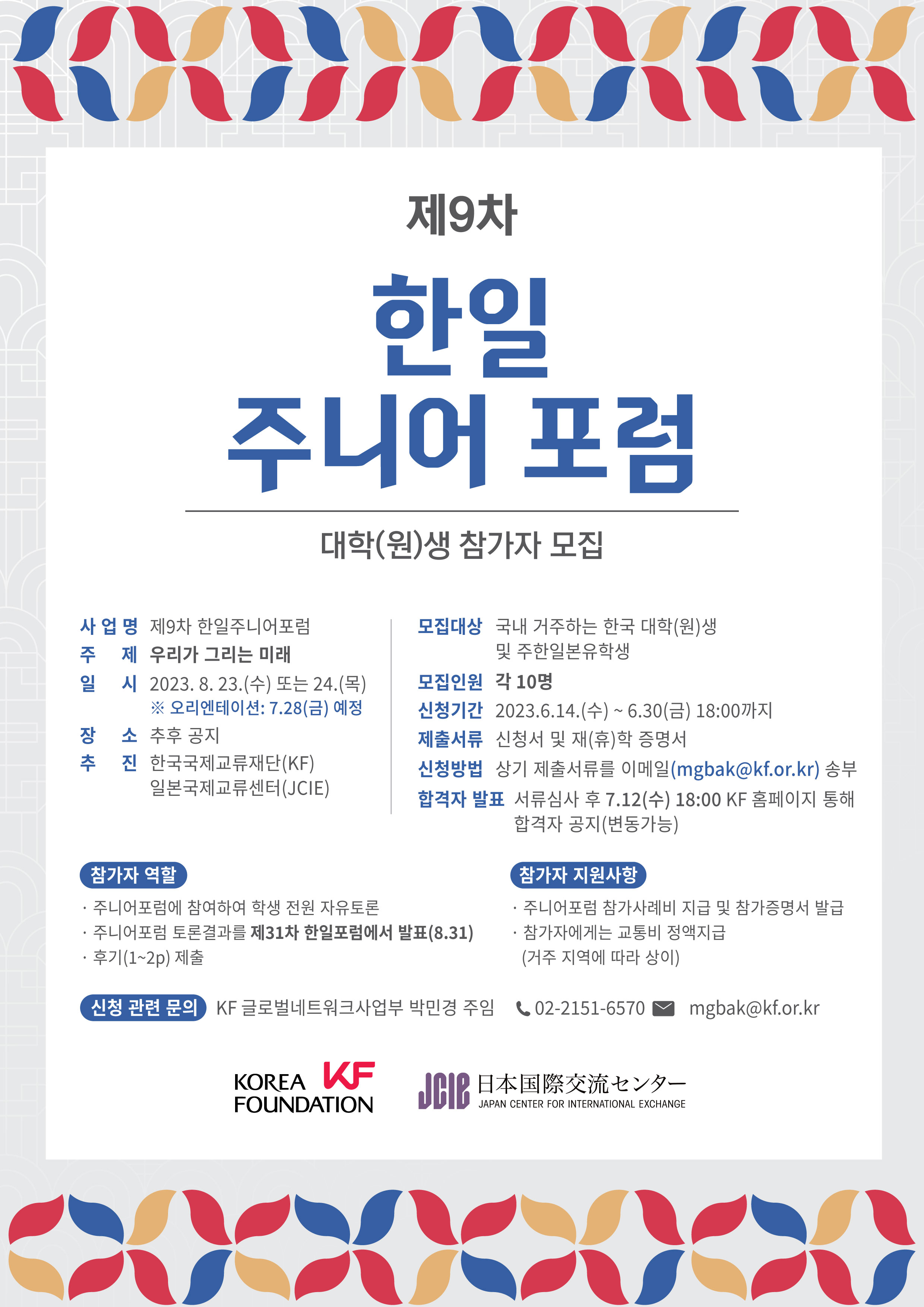 [ 행사 ] [한국국제교류재단] 제9차 한일주니어포럼 참가자 모집 안내