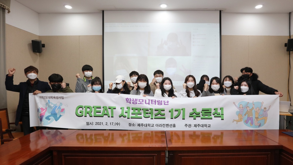 Jeju National University Regional Leading University Development Project (Lee Dong Cheol, Director) held a completion ceremony for the first term Project Supporters GREATer” in Ara Convention Hall on the campus last Thursday (February 18, 2021).