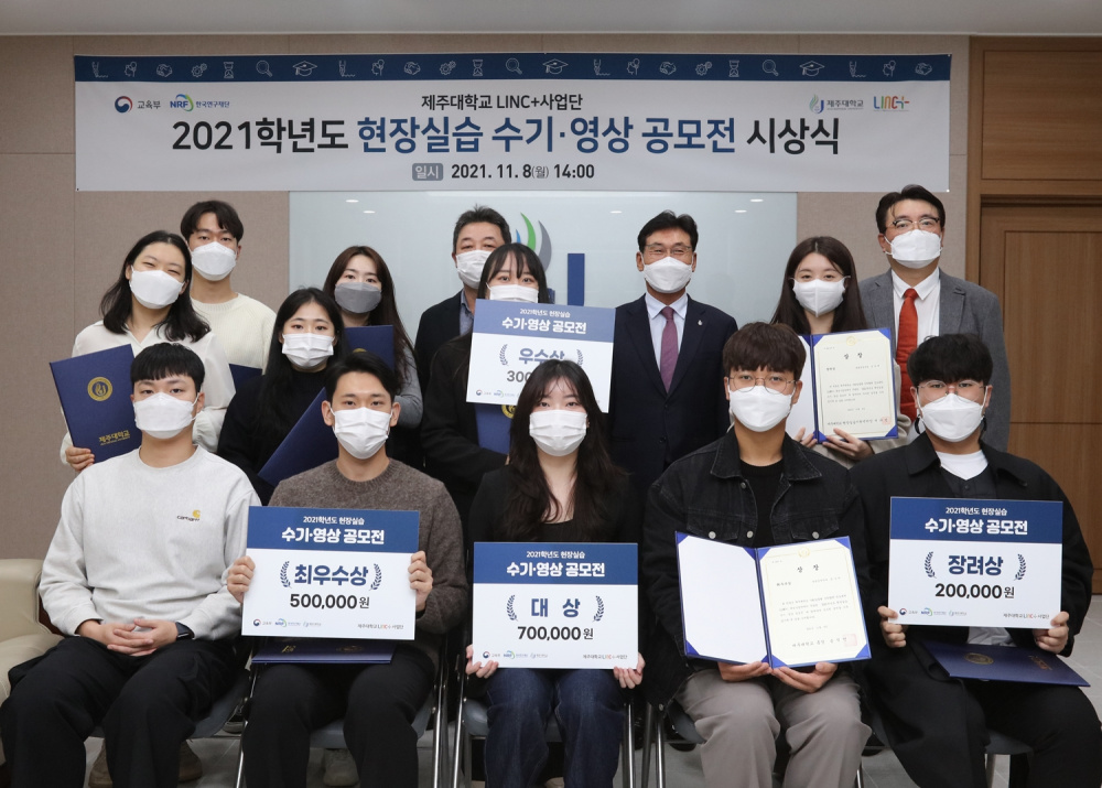 An excellent case of video entry was submitted also for ‘2021 LINC+ Video Contest’ hosted by the Ministry of Education and hosted by National Research Foundation of Korea. Moon, Sang-won (field-practiced in Jeju Bank) was awarded with a first-place prize in the contest, with his topic ‘Field practice? You can do it.’