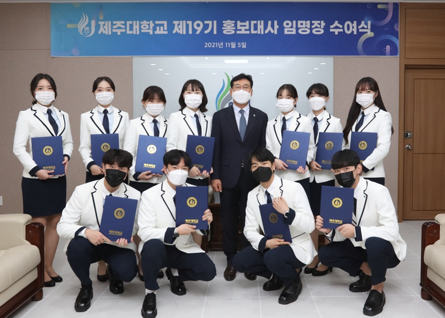 Jeju National University (Song Seok-Eon, President) held a ceremony for newly appointed publicity ambassadors on Friday (Nov. 5, 2021).