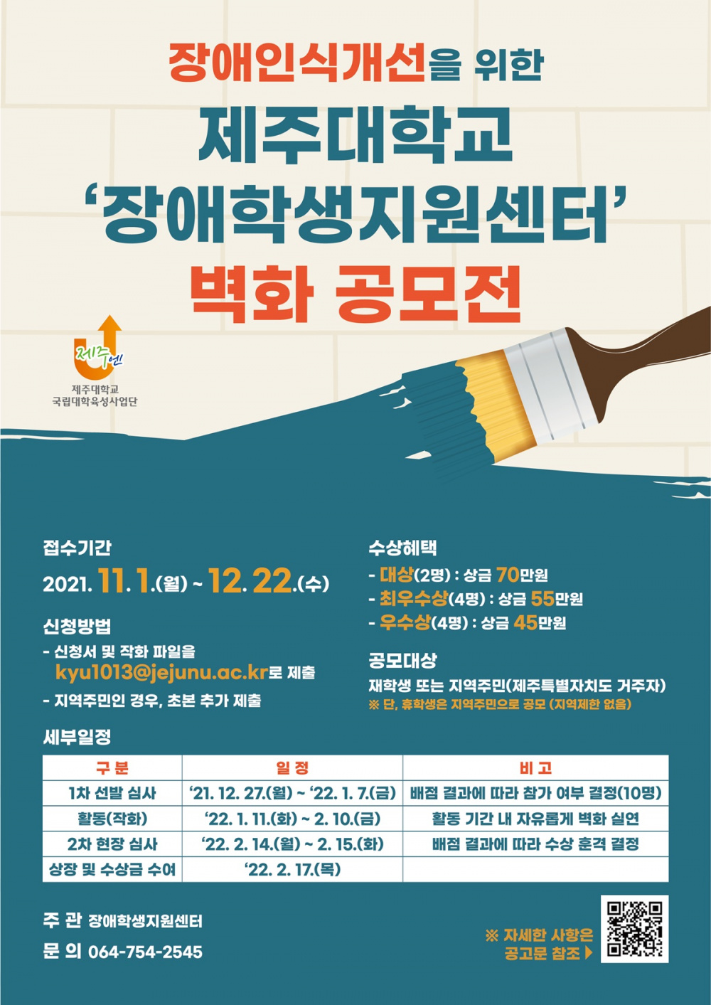 Jeju National University’s Support Center for Handicapped Students will hold a mural contest on improved student accessibility.