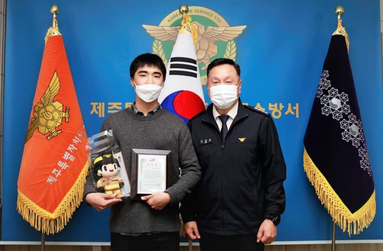 Kim Yeong-ho, head of the Jeju Fire Department, said he would like to express his sincere gratitude to Lee for assisting with the rescue operation without hesitation after the tragic collision. The young man’s courageous and altruistic act will be a good model for others, he added.