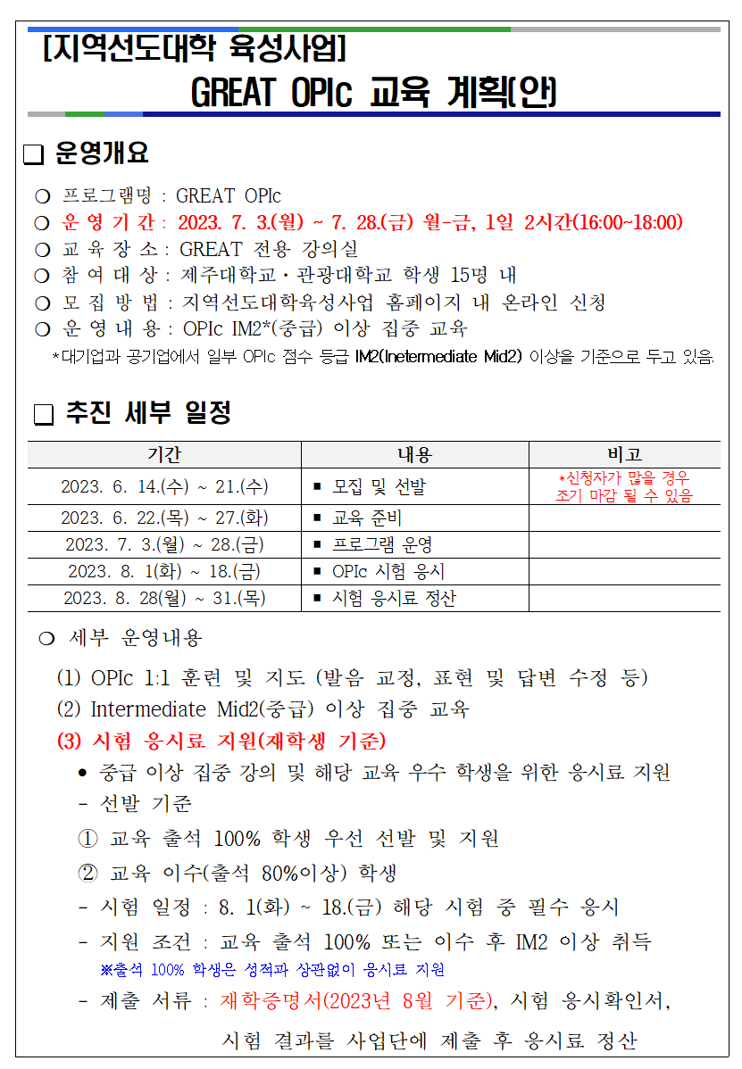 [ 일반 ] [지역선도] ★GREAT OPIc 모집 안내★