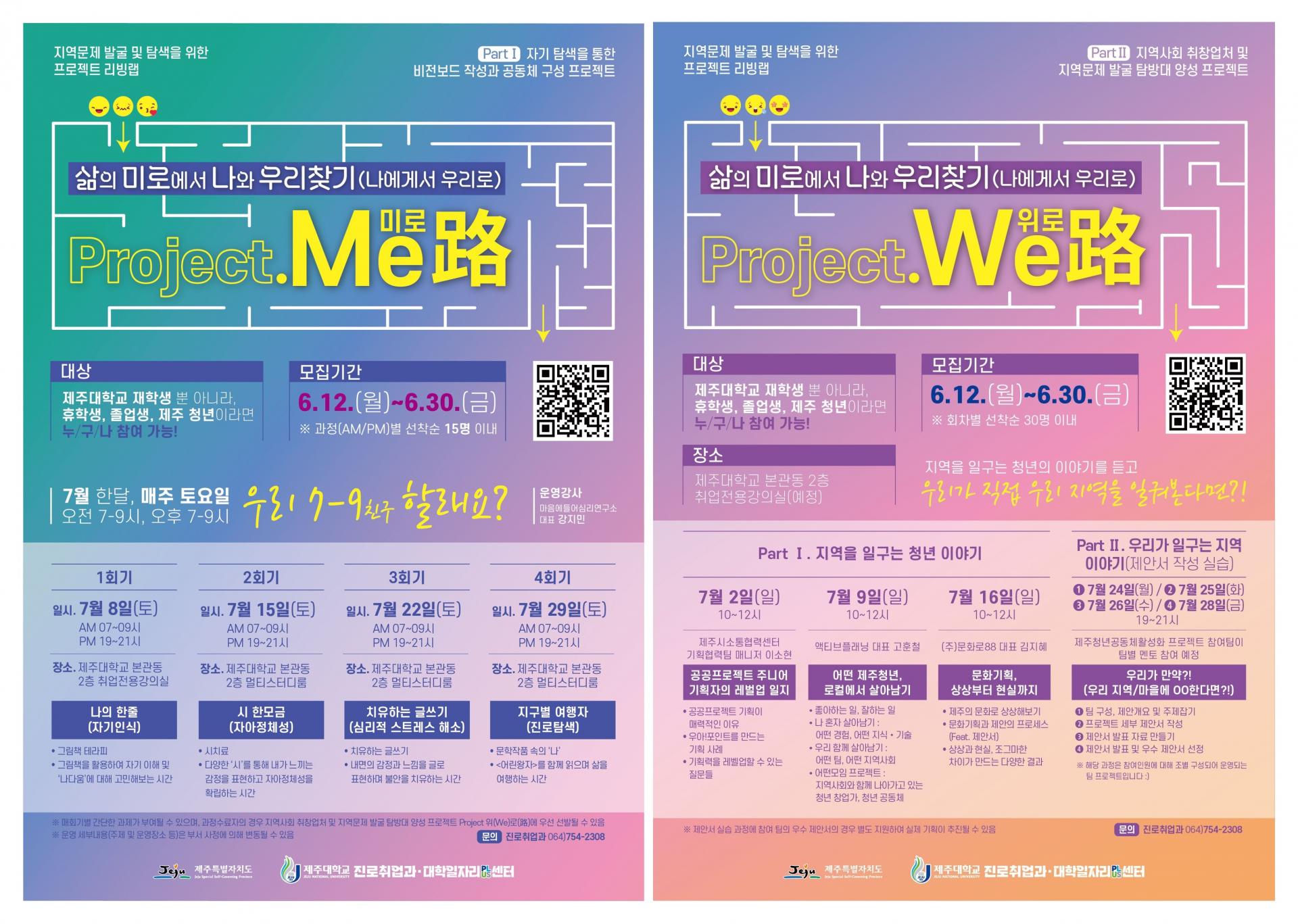 제주대학교 진로취업과∥대학일자리플러스센터에서는 지역문제 발굴 및 대안탐색을 위한 프로젝트 리빙랩 「미(Me)로(路), 위(We)로(路)」를 진행할 예정입니다.