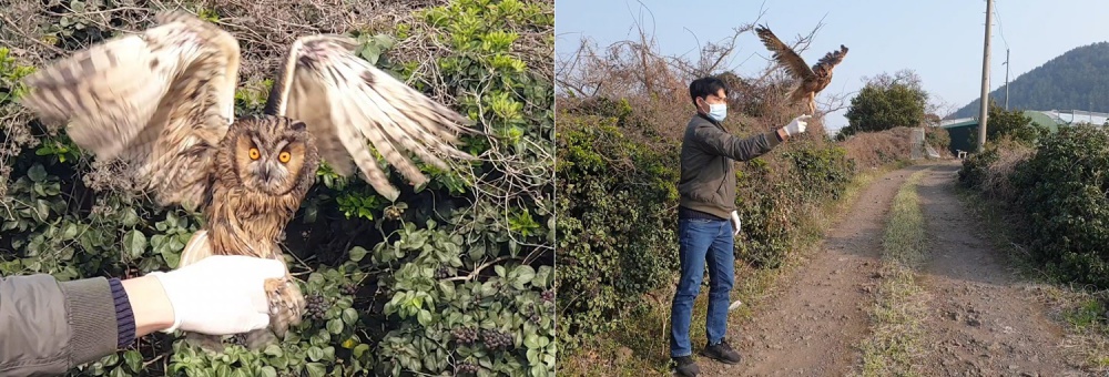 Jeju National University’s Jeju Wildlife Rescue Center announced Thursday (March 11) that a long-eared owl (scientific name: Asio otus) has been recovered from injuries and released to nature.
