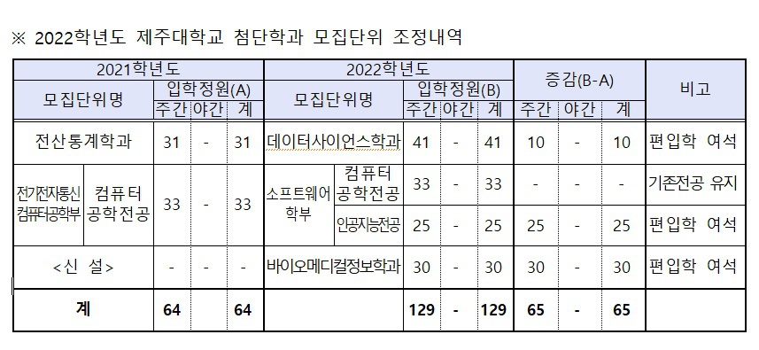 The nation’s education authorities have recently encouraged colleges to focus more on advanced sciences education, although the shrinking number of school-aged children has resulted in demand for reducing the university sizes. In line with the government’s efforts to lead the development of future-oriented technologies, the Jeju National University decided to allocate its transmission admission capacity to the related departments.