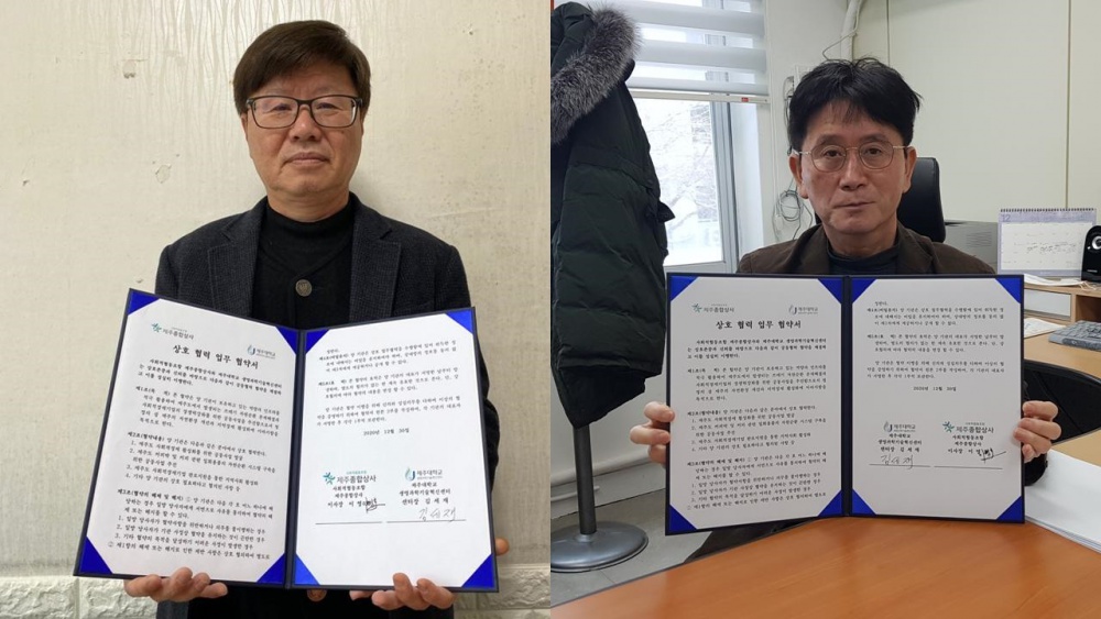 The Jeju National University Center for Life Science and Technology Innovation (Kim Sae Je, Director) has signed the agreement with Social Cooperative Union Jeju General Firm (Lee Young Ho, Manager) for Jeju’s social economic development yesterday (December 30, 2020).