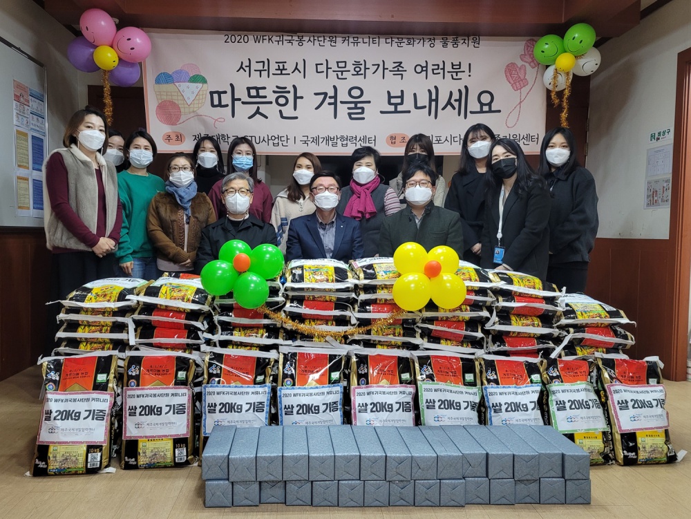 Jeju National University International Development Cooperation Center (Lee Kyung Sang, Director) together with JNU GTU Project (Oh Hong Shik, Director) visited 43 homes of multicultural families (Vietnam, Cambodia, Laos, and Philippines) delivering them 20 kg of rice and 30 thermo bottles to each home in Seogwipo.