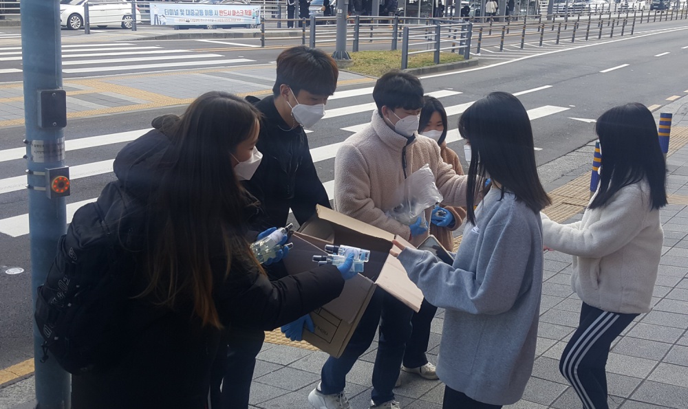 The BTS “Naneum” Volunteers (Kim In Joong, Director) comprised of the students of the JNU College of Life and Natural Resource Science Faculty of Biotechnology conducted an anti-COVID-19 spread campaign in Jeju 5th day flea market and Jeju City Hall areas.