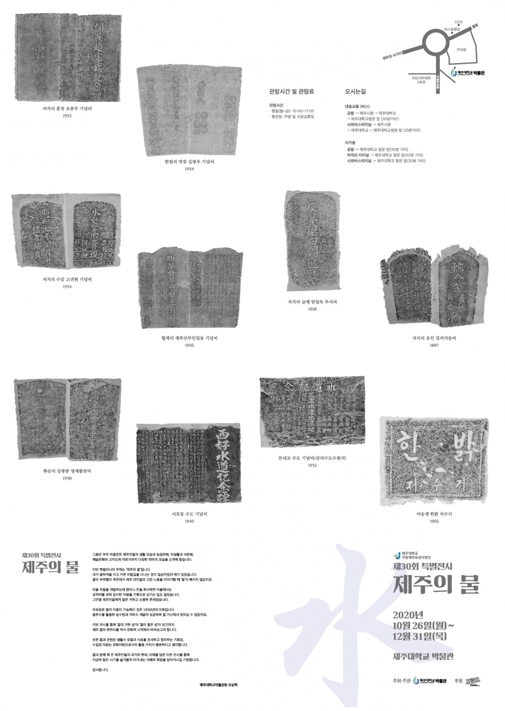 The JNU Museum (Oh Sang Hak, Head Curator) is having a special exhibition entitled the 30th Special Exhibit “Water of Jeju” in the museum gallery (3rd floor) from October 26 through December 31, 2020.