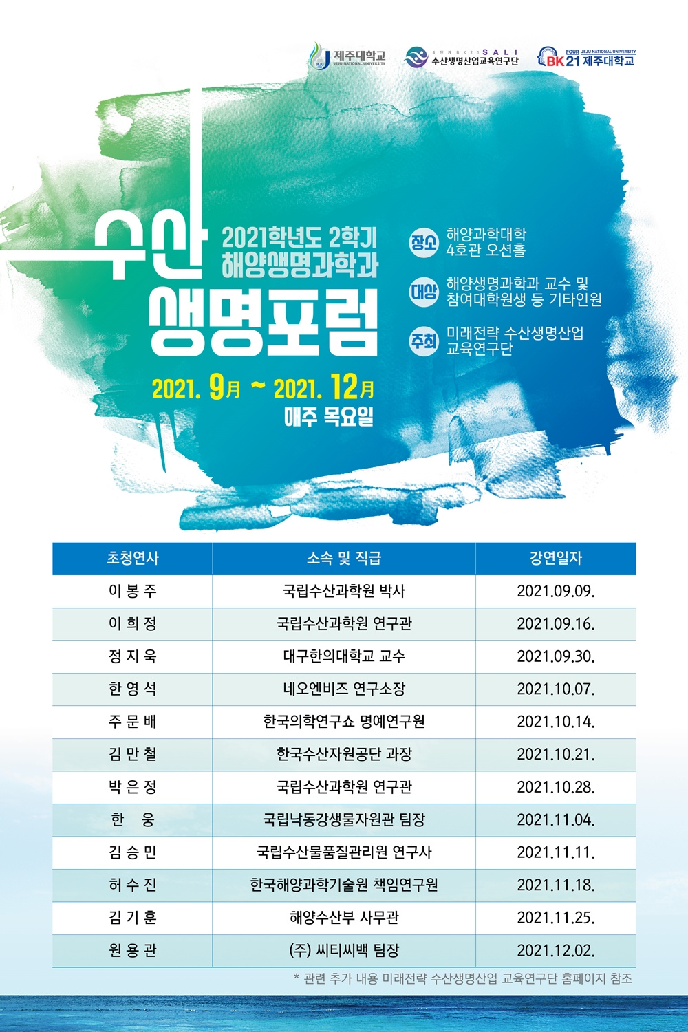 The latest series of lectures were held in line with the 2021 Fall Semester Forum of the school’s Marine Life Science Department. The forum was organized to provide the graduate school students in the related programs with an opportunity to obtain a broadened knowledge.