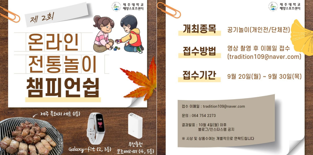 The 2nd Online Traditional Gaming Championships series will held for the faculty and students, the Jeju National University’s Ocean Leisure Sports Center announced Thursday (Sept. 16).