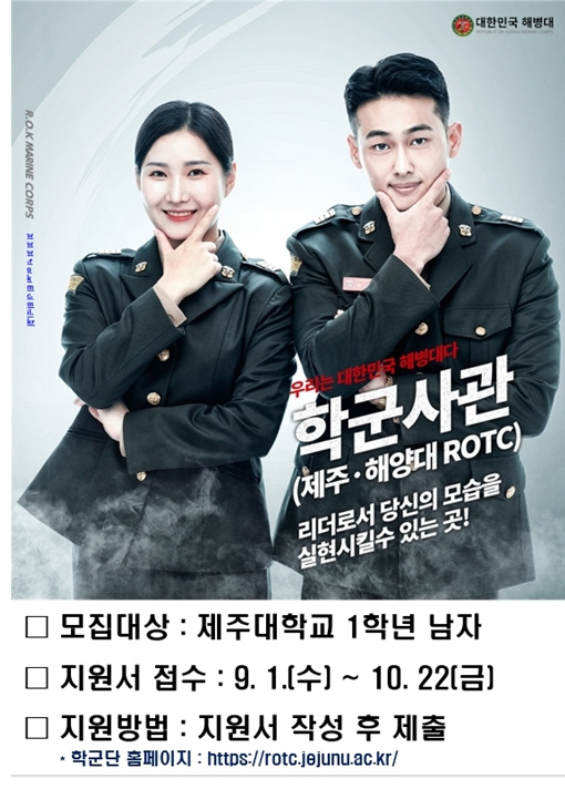 Jeju National University’s Reserve Forces Regiment will recruit new cadets for the Reserve Officers’ Training Corps (ROTC) of the Republic of Korean Marine Corps.