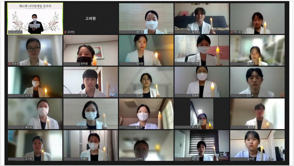 Jeju National University’s Department of Nursing held the 21st Oath of Nightingale for the junior nursing students at the College of Nursing on Friday (Aug. 27). To prevent the spread of the COVID-19 virus, the event was held online, using the Zoom platform.