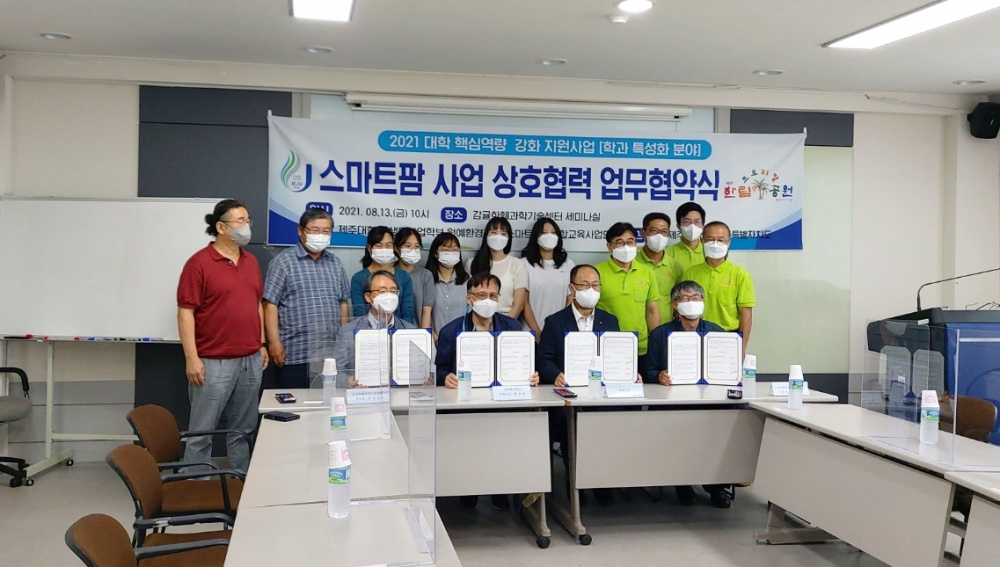 Jeju National University’s Department of Horticultural Science agreed on mutual cooperation for the Smart Farm Project with the university’s related research centers and a popular tourist attraction, the university announced on Saturday (Aug. 21).