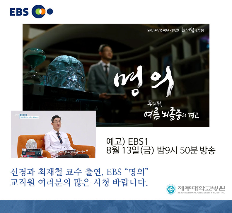 Choi Jay Chul, a professor in the Department of Neurology at Jeju National University Hospital, will give a lecture on Friday (Aug. 13) on the nation’s well-known TV show, “An Excellent Doctor”.