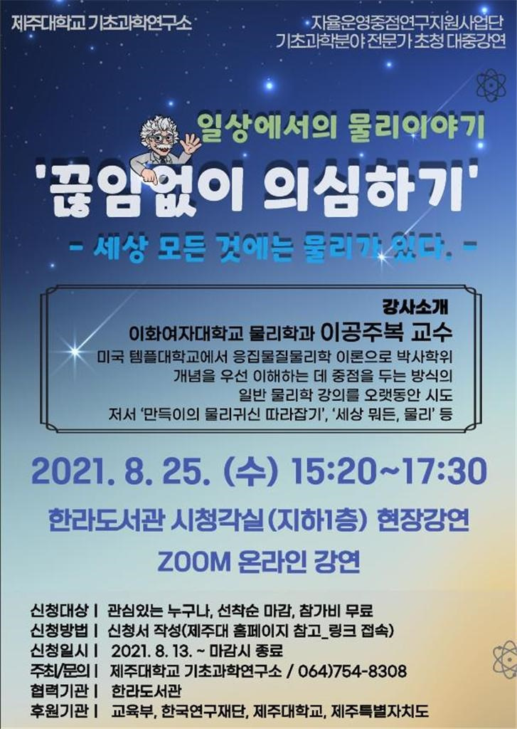 The lecture event will be held in the audiovisual room of Halla Library, featuring Lee Kong-ju-bock, professor of physics at Ewha Women’s University.