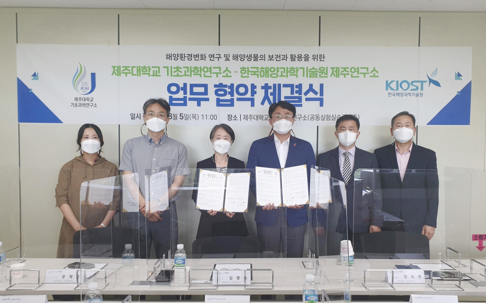 Jeju National University’s Research Institute for Basic Science (JNU-RIBC) and the Jeju Research Center of Korea Institute of Ocean Science & Technology (KIOST Jeju) signed a memorandum of understanding (MOU) on research cooperation on Thursday (Aug. 5).