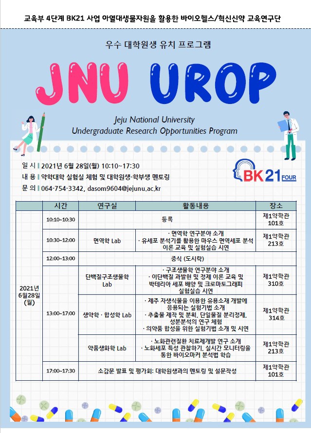 Biohealth-New Drug Research Team at JNU BK (Brain Korea) 21 announced on June 9 that it would run OPEN Lab, in which laboratories conducting researches related to BK projects and educational and support programs will be introduced to undergraduate students on June 22.