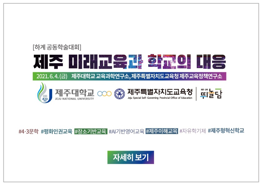 Jeju National University’s Educational Science Research Institute (JNU-ESRI) will host the 2021 Joint Summer Academic Conference on June 4. The conference has been organized jointly with Jeju Special Self-Governing Provincial Office of Education’s Policy Institute and Jeju National University’s College of Education.