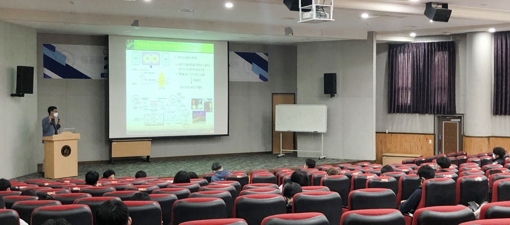 During the seminar, students with interest in the bio-fisheries industry learned how to build a creative research capability from Oh Chulhong, senior researcher at the Jeju Research Center, the Jeju regional branch of the Korea Institute of Ocean Science & Technology.