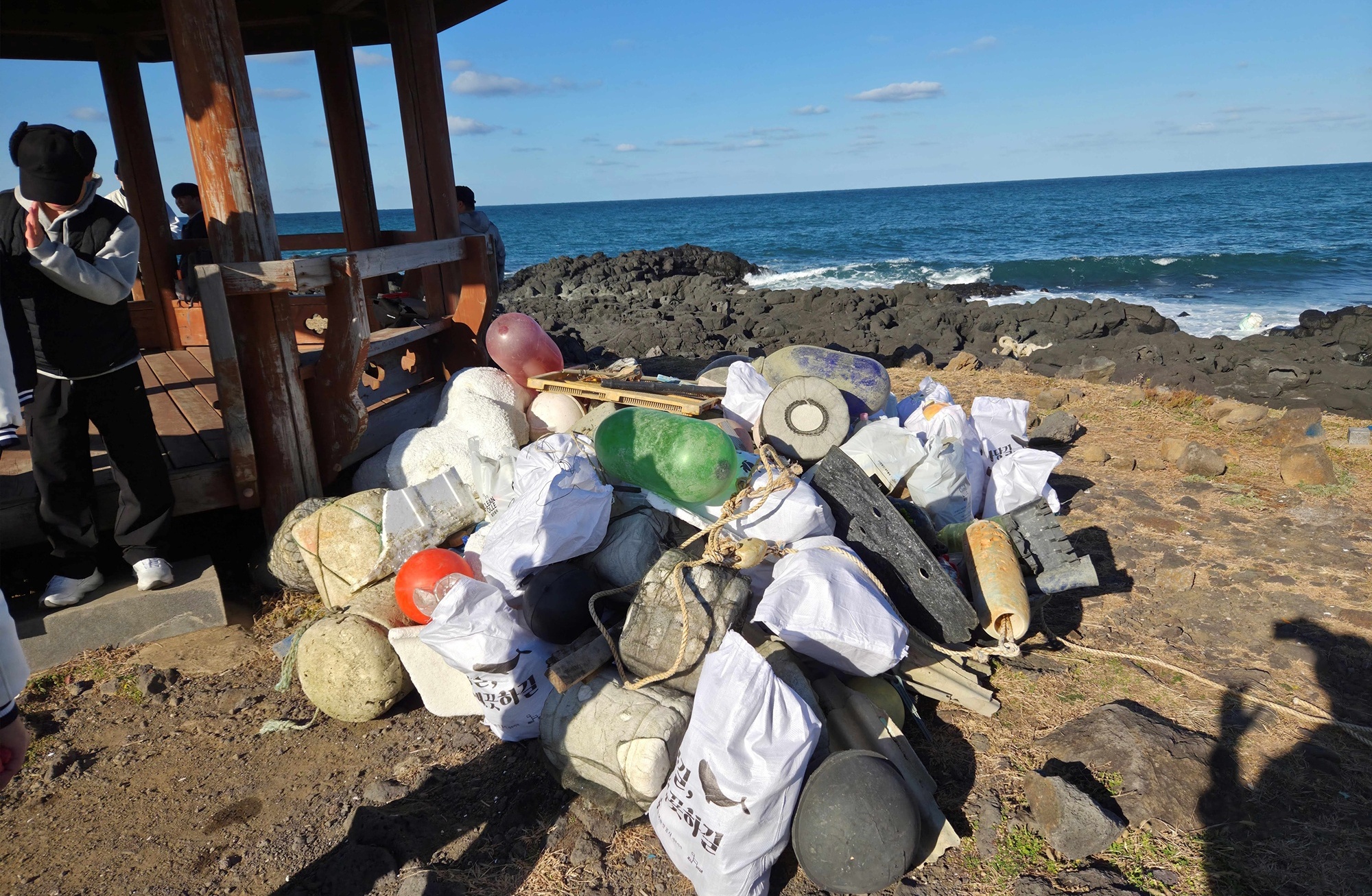 JNU나눔실천봉사단은 애월리 해안가(애월리 1877-1 부근)에 방치된 폐어구, 스티로폼, 플라스틱 등 각종 해양 쓰레기 약 1200리터를 수거하며 해양 환경 개선에 힘을 보탰다.