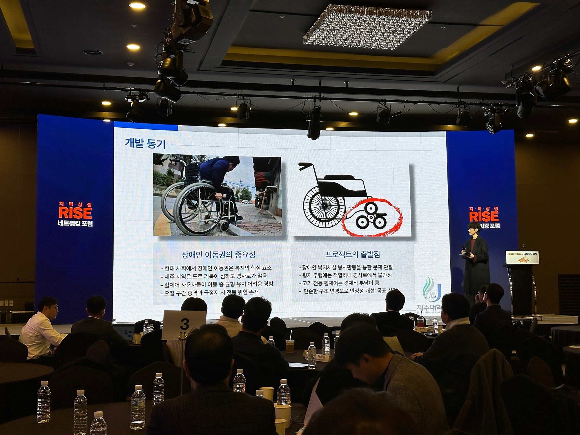 ‘지역상생 RISE 네트워킹 포럼’서 제주대 혁신 빛났다… ‘휠체어 턱 넘김 보조장치’ 큰 호응